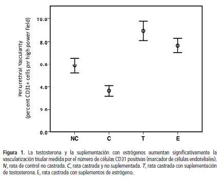 En este estudio encontramos que la suplementación con testosterona y estrógeno en ratas castradas condujo a un aumento significativo de la angiogénesis y la vascularización periuretral (fig.1).