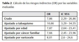 Nuestro estudio evidencia un OR elevado de presentar cáncer testicular ante la presencia de microlitiasis testicular, resultados similares a otros estudios similares con poblaciones incluso más grandes que la nuestra.